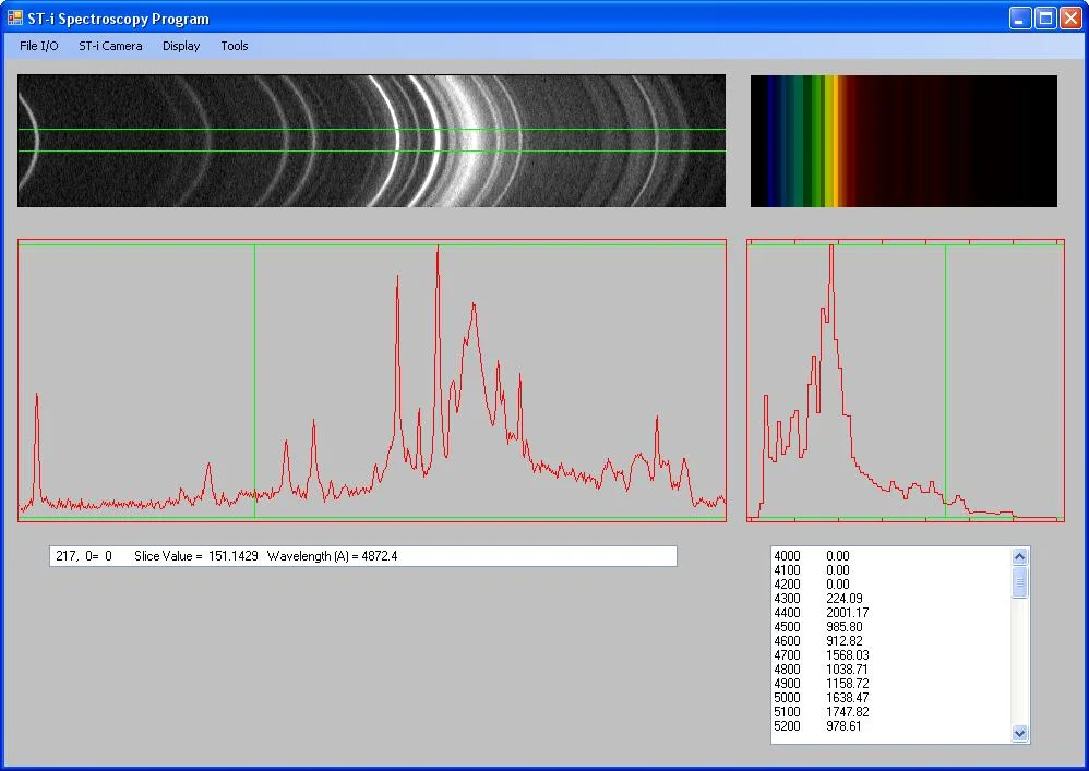 Программа для ПК включена в спектрограф, который позволяет пользователю управлять ST-I и получать спектры, создавать калибровку длины волны для спектрографа, выводить текстовые файлы данных для обработки в Excel или другой программе и повторно ячейки данных в формате с единицами измерения длины волны одинакового размера для более простого сравнения с данными решетки или из других источников.